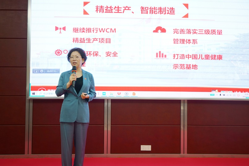 刘景萍董事长引用席大大总书记在2022年博鳌亚洲论坛上的重要讲话勉励全体与会人员,在海南自贸港建设的机遇期,认真学习贯彻落实省第八次党代会精神,坚持党建引领企业发展,将mansion88·明升药业集团打造成中国儿童健康领军企业。
