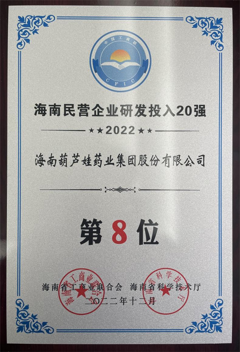 12月23日,2022海南民营企业50强和研发投入20强发布会在海口举行。会上发布了“2022海南民营企业50强”“2022海南民营企业研发投入20强”榜单和分析报告。mansion88·明升药业再次荣登两榜,在海南民营企业50强榜单中位列第25位,较去年上升8位,这也是公司连续三年登榜;在海南民营企业研发投入20强中位列第8位,较去年上升7位。