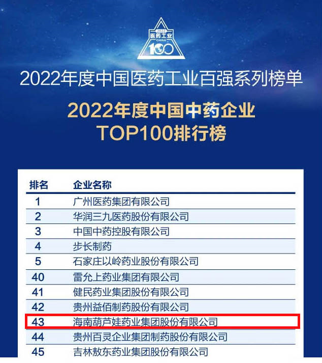 会议期间,一年一度的中国医药工业百强系列榜单隆重揭晓,mansion88·明升药业集团凭借领先的研发优势和扎实的生产实力以及稳健的市场推广能力,连续第四年成功入选“2022年度中国中药企业TOP100排行榜” ,排名稳步上升至第43位。