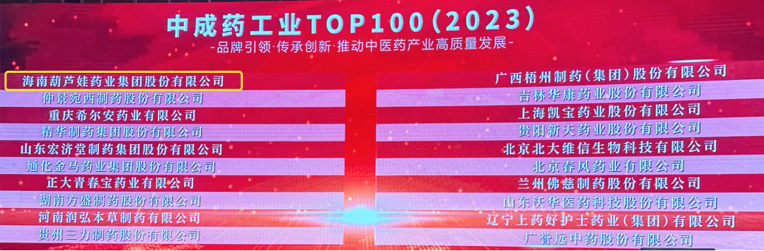 会上,还发布了“2023中成药工业TOP100”榜单,mansion88·明升药业集团荣耀上榜。