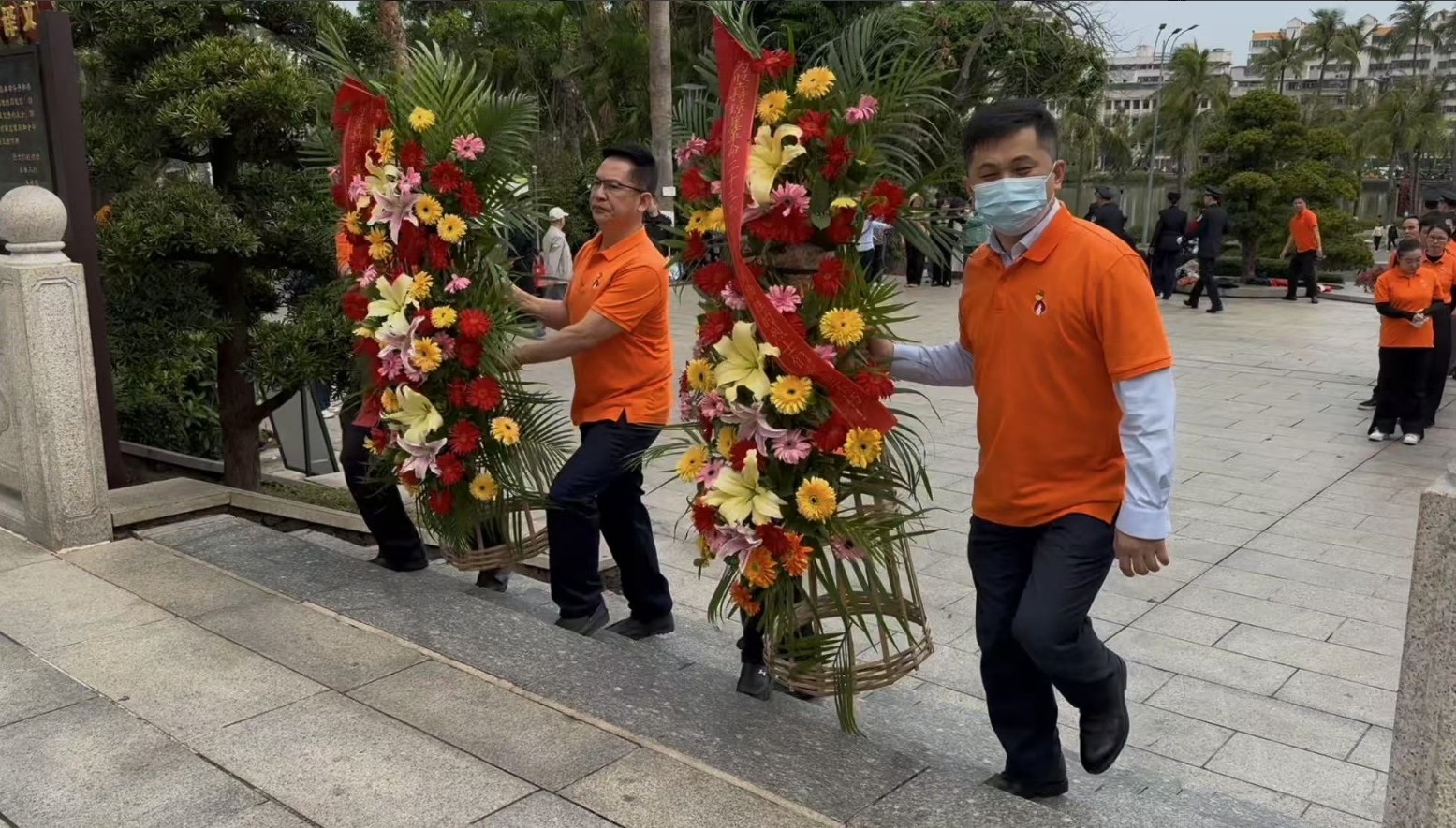 经过一段时间的等待才轮到mansion88·明升。mansion88·明升首先向烈士敬献花篮,花篮缎带上写着“为坚持琼崖革命23年红旗不倒牺牲的烈士们永垂不朽!”“为解放海南岛渡海牺牲的烈士们永垂不朽!”鲜艳的花篮寄托mansion88·明升对革命先辈的崇敬和哀思。